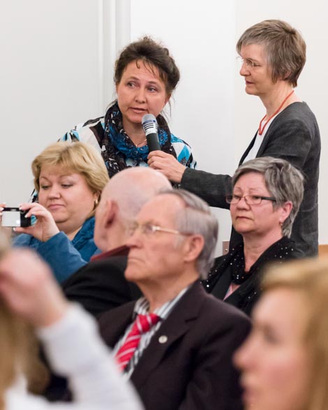 Als vorbildlich bezeichnete der Aussiedlerbeauftragte der Bundesregierung, Dr. Christoph Bergner, die Nürnberger Veranstaltungreihe zum 250. Jubiläum des Katharinen-Manifestes. Im übervollen Saal des Hauses Eckstein rief er die Deutschen aus der Sowjetunion zu mehr Selbstbewusstsein auf angesichts ihrer großen kulturfördernden Tradition in Russland und ihrer gegenwärtigen Leistungen in der Bundesrepublik. Sie seien Brückenmenschen, deren integrative Leistung zwischen Ost- und West nicht hoch genug geschätzt werden könne. Nach seinem Vortrag über Geschichte und Gegenwart der Russlanddeutschen stand Dr. Bergner für Fragen zur Verfügung. Betroffene aus dem Publikum beklagten vor allem die Hürden bei den Besuchsmöglichkeiten für Familienangehörige und bei der Familienzusammenführung.